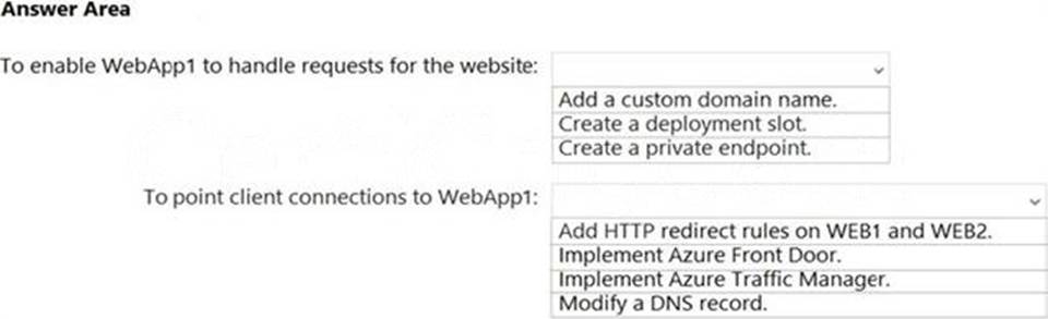 WEB1 and WEB2 run an Internet Information Services (IIS) website. Internet users connect to the website by using a URL of https://www.fabrikam.com.