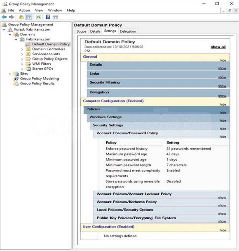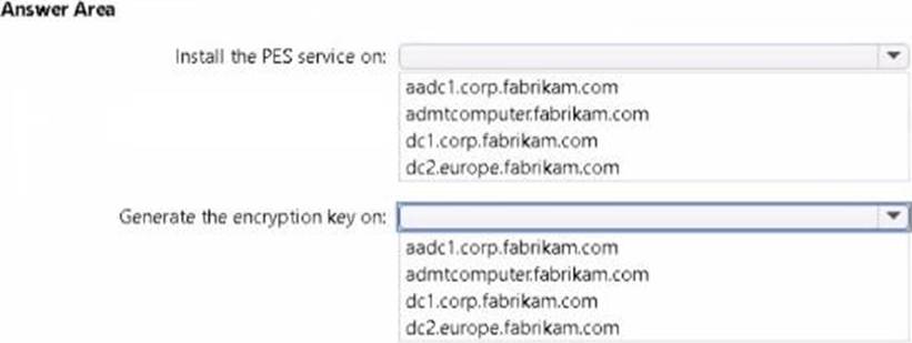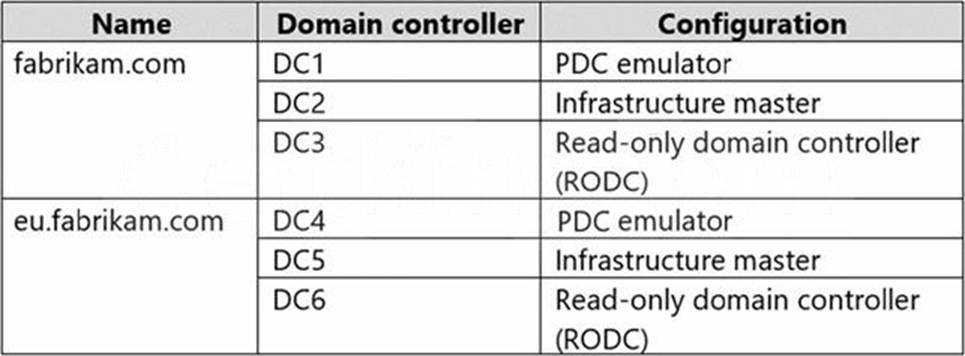 Fabrikam has an Active Directory Domain Services (AD DS) forest that syncs with an Azure Active Directory (Azure AD) tenant. The AD DS forest contains two domains named corp.fabrikam.com and europe.fabrikam.com.