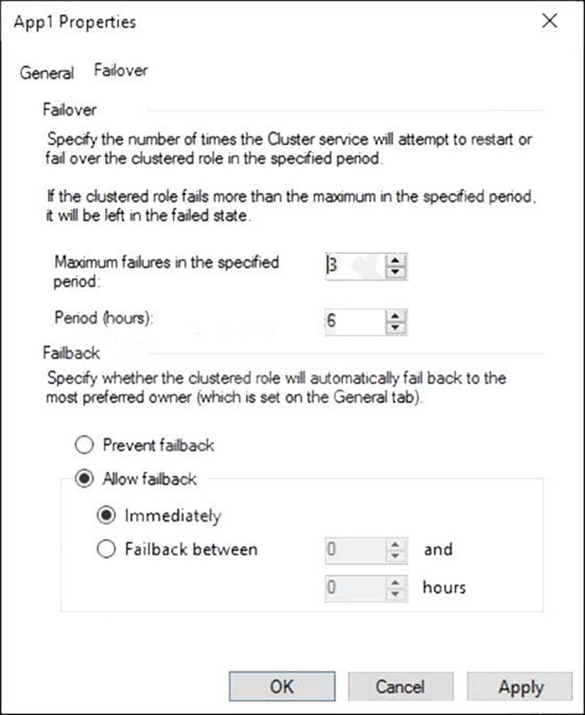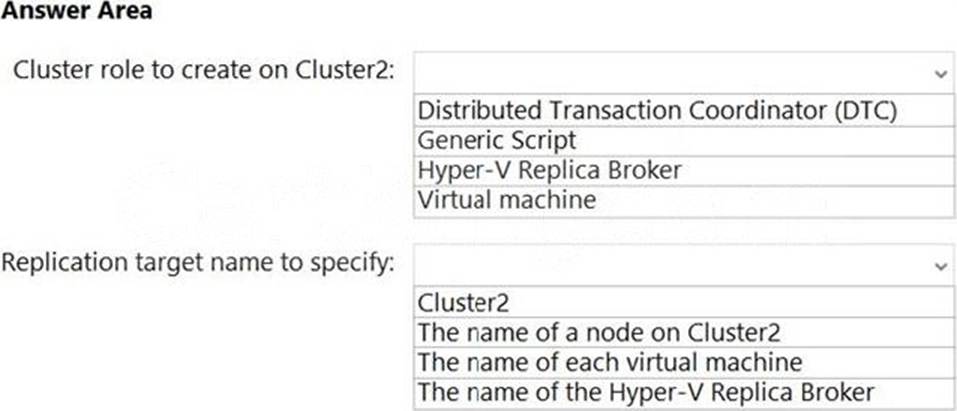 All the virtual machines in the Chicago office are hosted on HV1 and HV2. HV1 and HV2 are nodes in a failover cluster named Cluster1.
