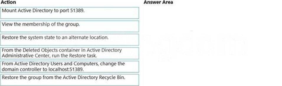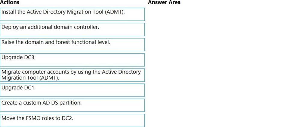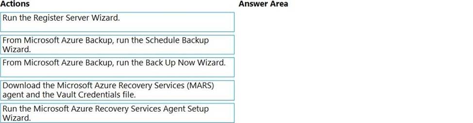 In which order should you perform the actions? To answer, move all actions from the list of actions to the answer area and arrange them in the correct order.