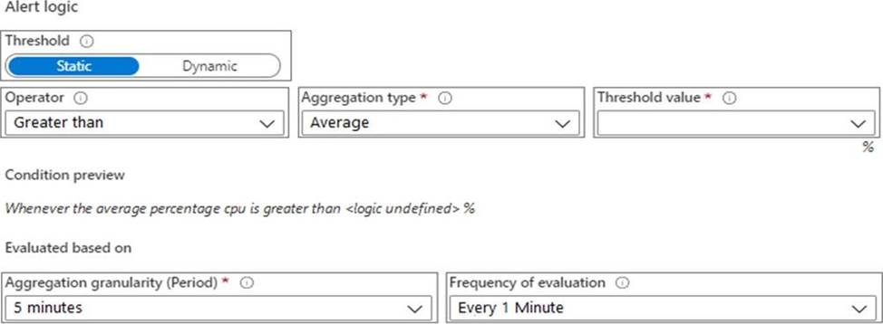 ✑ An Azure Monitor alert for VM1 must be configured to meet the following requirements: