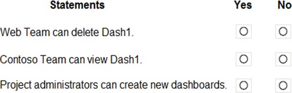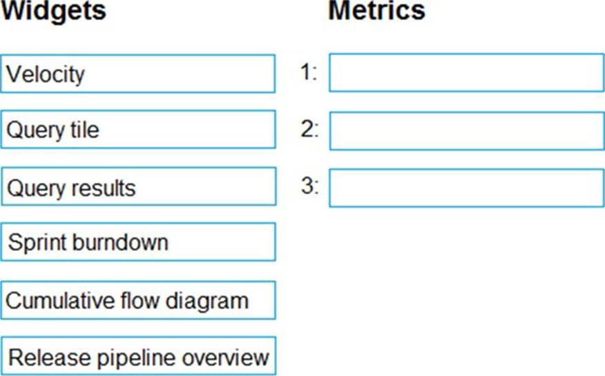 ✑ The Azure DevOps dashboard must display the metrics shown in the following table.